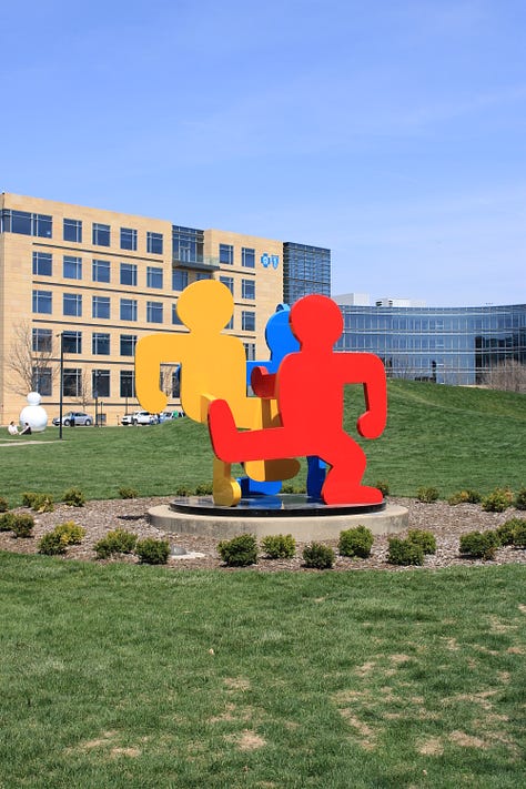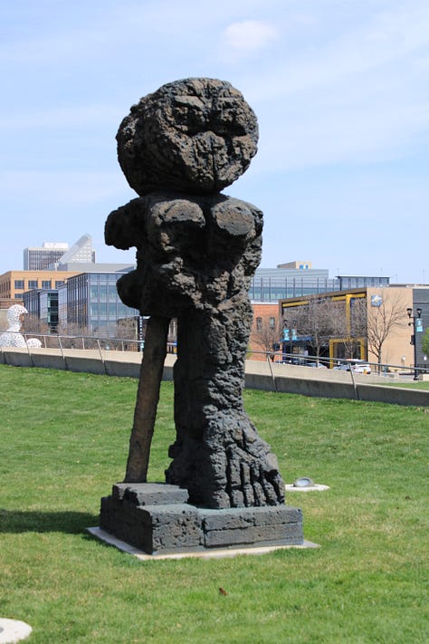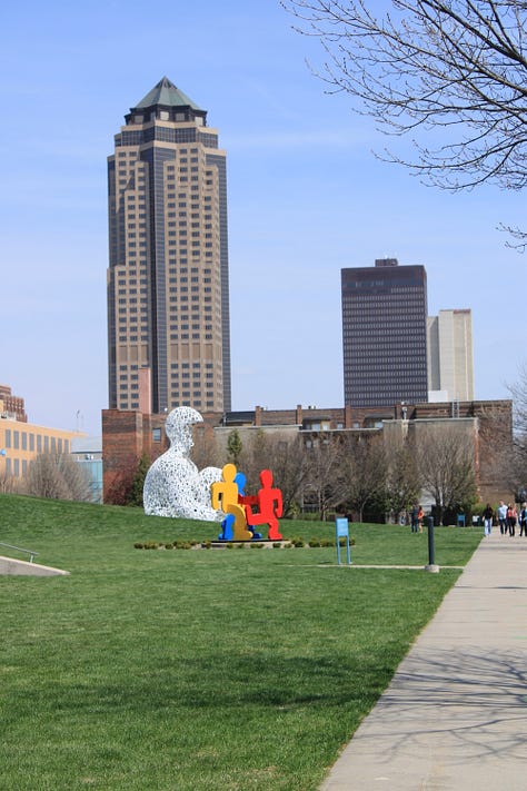 John and Mary married in 1961 and began collecting art almost immediately. In 2007, the couple donated 16 pieces from their private collection, the largest single public gift in Des Moines’ history, to the city (Ryan). The sculpture garden at Western Gateway Park was approved by the city council, with the pieces to be owned by the Des Moines Arts Center. The Des Moines Arts Festival, which began east of the river near the Simon Estes Amphitheater in 1998, relocated to Western Gateway Park in 2006, and the sculpture garden is now the center of the festival. The Arts Festival is one of my absolute favorite events in Des Moines, but that will be a separate post after the festival this summer, happening June 27-29. It is a weekend I look forward to every year.